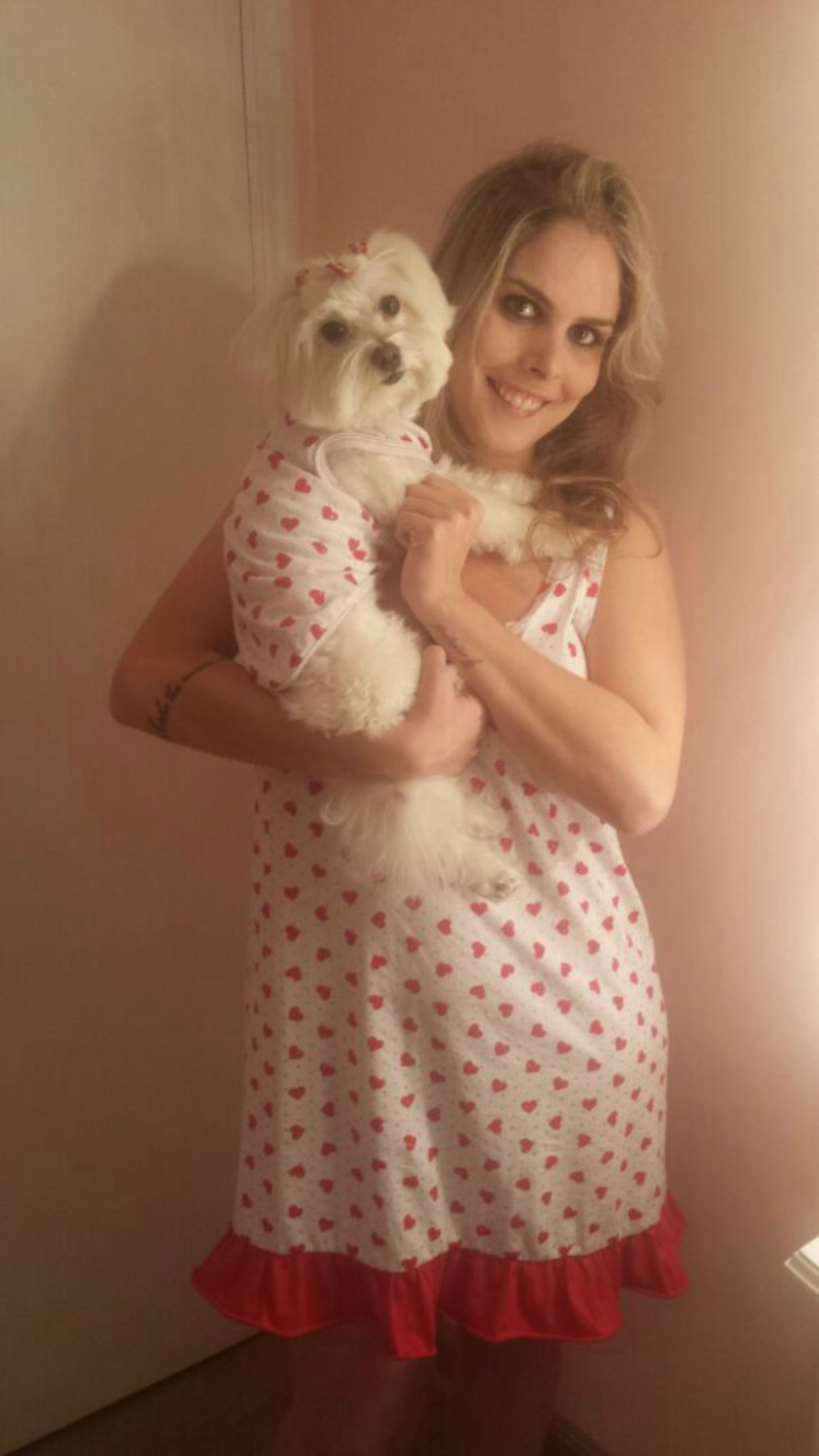 Entre os tutores que gostam de ver seus pets vestidos à sua semelhança está a comerciante Rita Prado, de 29 anos. “A Juju me ajudou a superar um problema de relacionamento, por isso trato ela como uma filha”, diz. Na hora de dormir, Rita e Juju, uma maltês branca de 4 anos, formam uma dupla que transborda amor: vestem pijamas idênticos com corações vermelhos estampados.