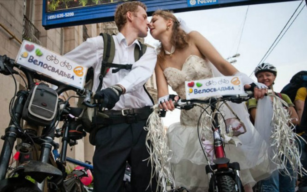#9 E estes noivos russos optaram por dar uma volta de bicicleta pela cidade com os convidados