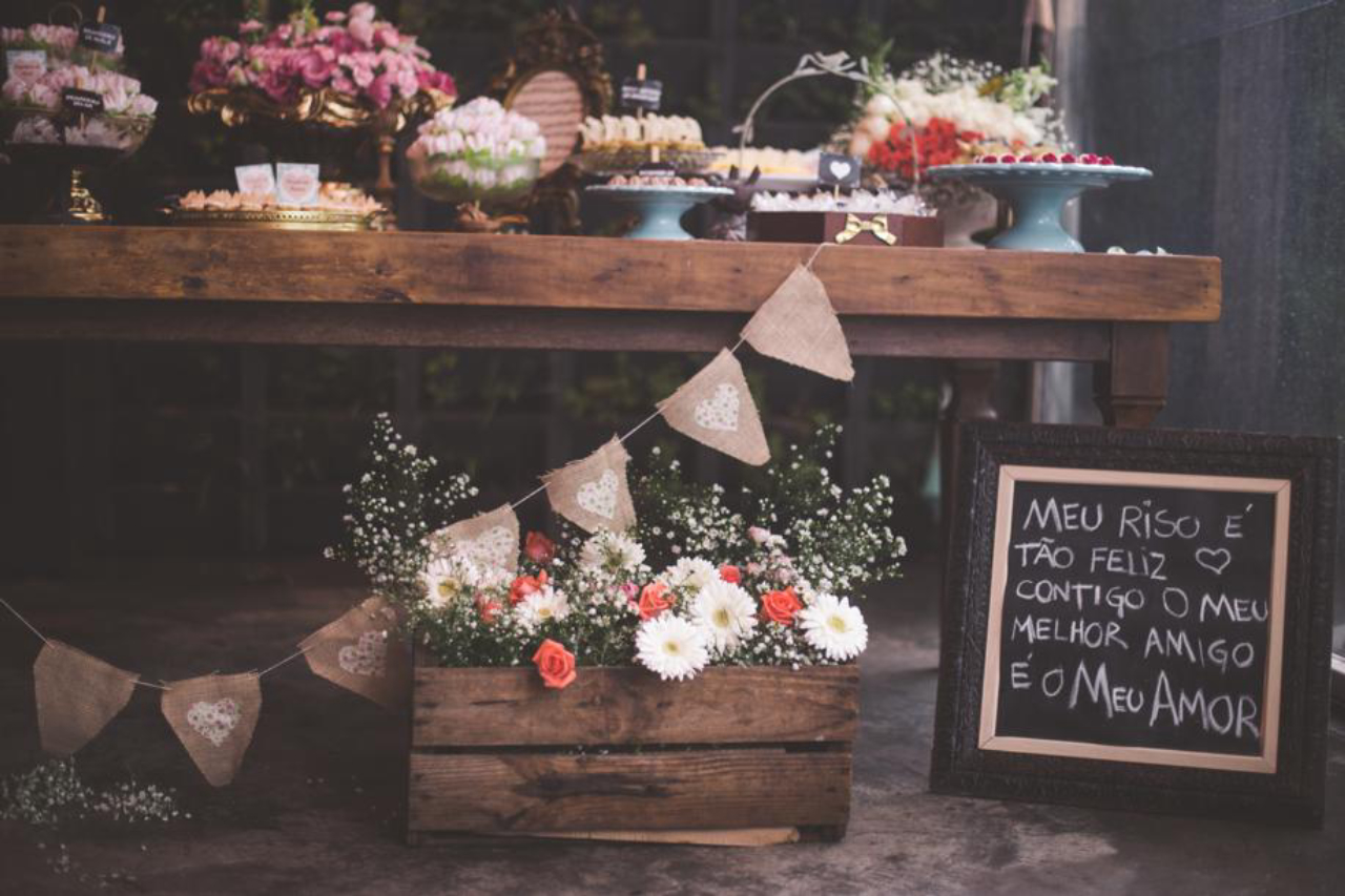 Os elementos podem estar em toda a parte, do convite dos padrinhos – entregues de maneira surpreendente, dentro de balões – aos elementos de decoração, como peças de madeira ou lousas pintadas à mão com tinta ou giz colorido com frases criativas que expressem o espírito do casal. Os cones de papel craft revestidos com renda e amarrados ao encosto das cadeiras com barbante colorido decoram e são um convite para desejar felicidade aos recém-casados. Forminhas para as guloseimas feitas de modo manual com papel, tecido ou cetim, dão um toque especial, assim como personalizar garrafas com cartões/pinturas à mão e cheias de flores ou mesmo guardanapos.