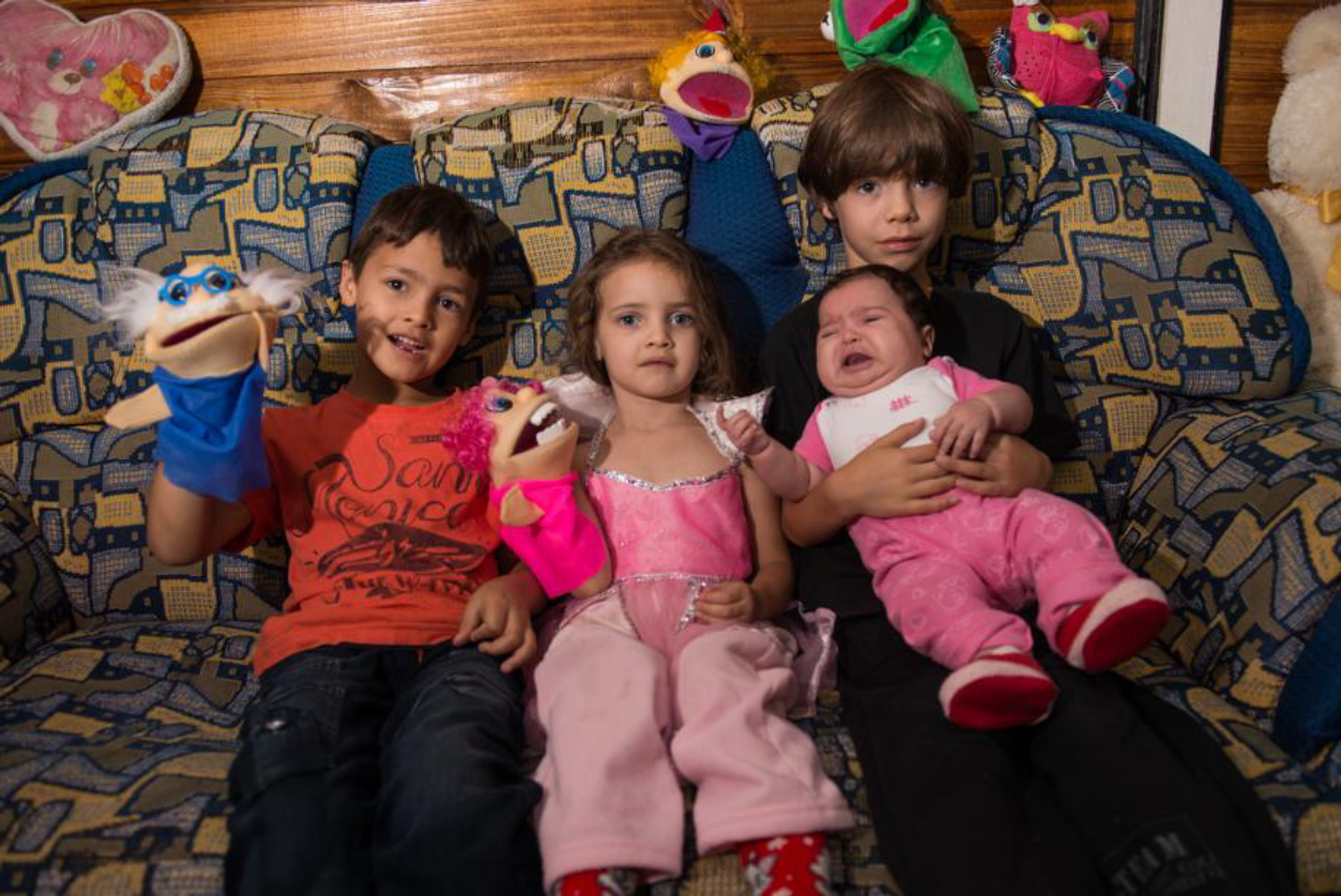 Benjamin (7), Analuiza (4), Ana Bel (2) e Adrian (9): os irmãos Souza vivem rodeados de imaginação. Foto: Lucas Pontes/Gazeta do Povo