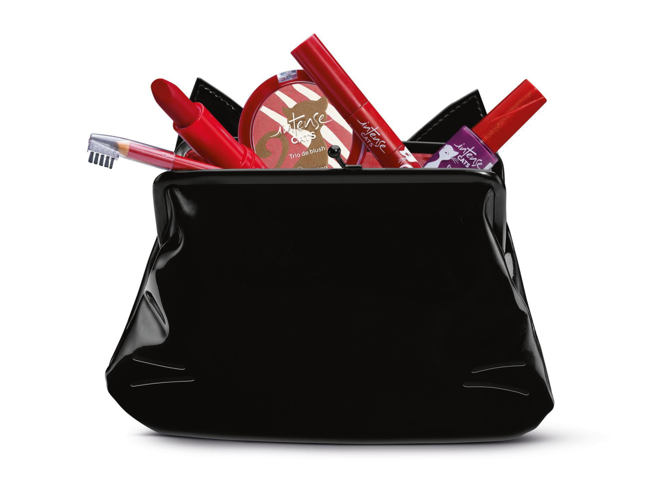 A coleção é formada por colônia, demaquilante, batons, palette de sombras com cores neutras e coloridas, duo delineador, duo lápis e trio de blush, mas o que mais enche os olhos das consumidoras da nova linha Intense Cats, de O Boticário, é a charmosa nécessairepreta com “orelhinhas” de gato (que também traz alças). Preços sugeridos: paleta de sombras (R$ 62,99), lápis de sobrancelha (R$ 21,99), colônia (R$ 79), duo delineador (R$ 37,99), duo lápis (R$ 21,99), lápis sobrancelha (R$ 21,99), trio blush (R$ 37,99), batons (R$ 18.99, cada), demaquilante (R$ 31,99), esmalte (R$ 12,99, cada) e nécessaire/bolsa (R$ 54,99).