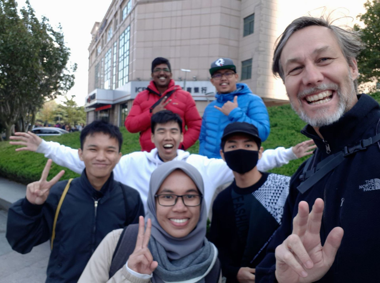 Por onde passa, o viajante coleciona novos amigos. No extremo oriente, no ano passado, ele encontrou esta turma de chineses, coreanos, indianos e malaios. Foto: Ike Weber/acervo pessoal.