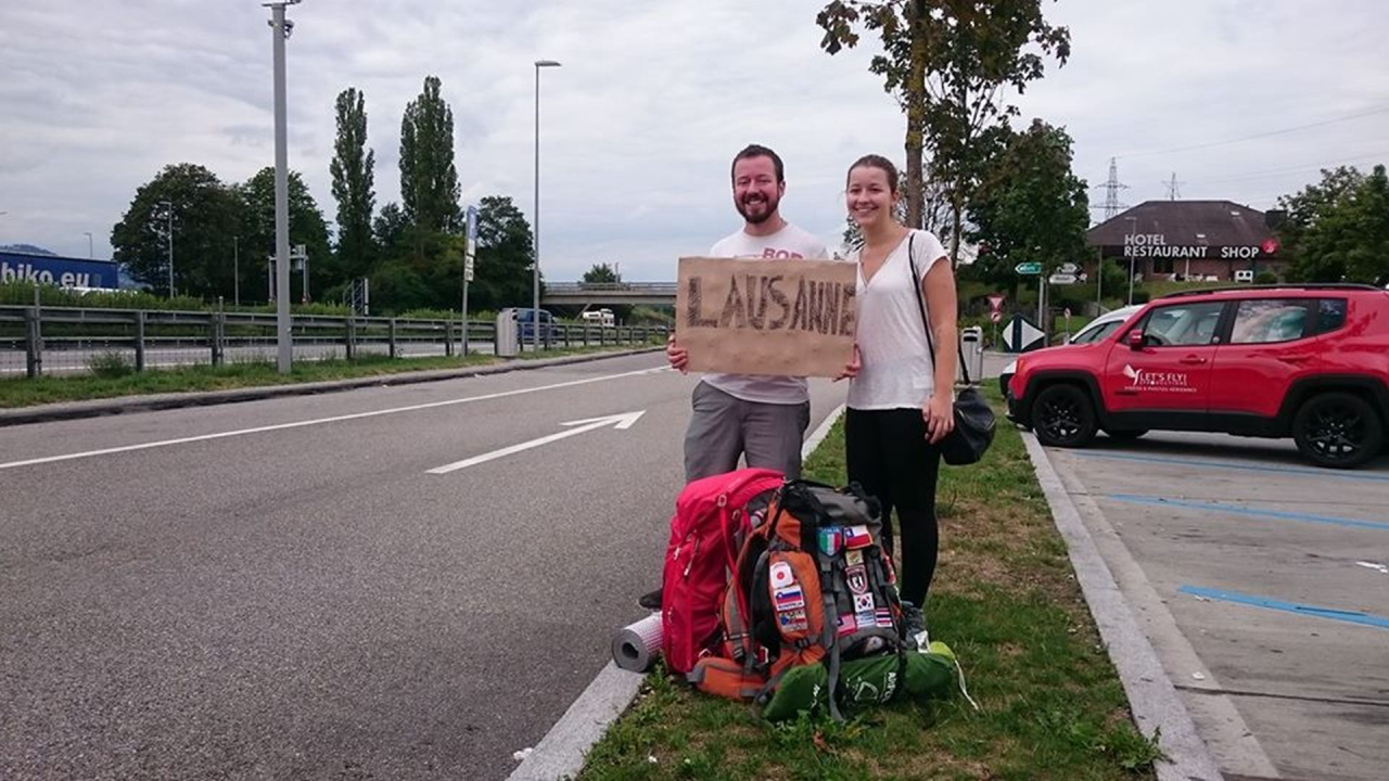 A caminho de Lausanne com a irmã, Fernanda Eisfeld, também de carona. Foto: acervo pessoal.