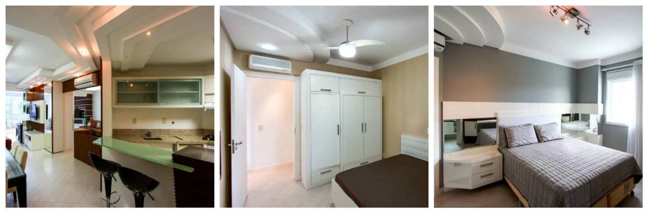 Localizado em Jurerê Internacional o apartamento conta com três suítes e cinco camas. Um dos destaques da acomodação é a integração da sacada gourmet com a sala. Fica próximo a supermercados, restaurantes e a 800 metros da praia. Acomoda até sete pessoas. R$ 1.170 a diária. Taxa de limpeza de R$ 150 e taxa de serviço R$ 591. Tem piscina.