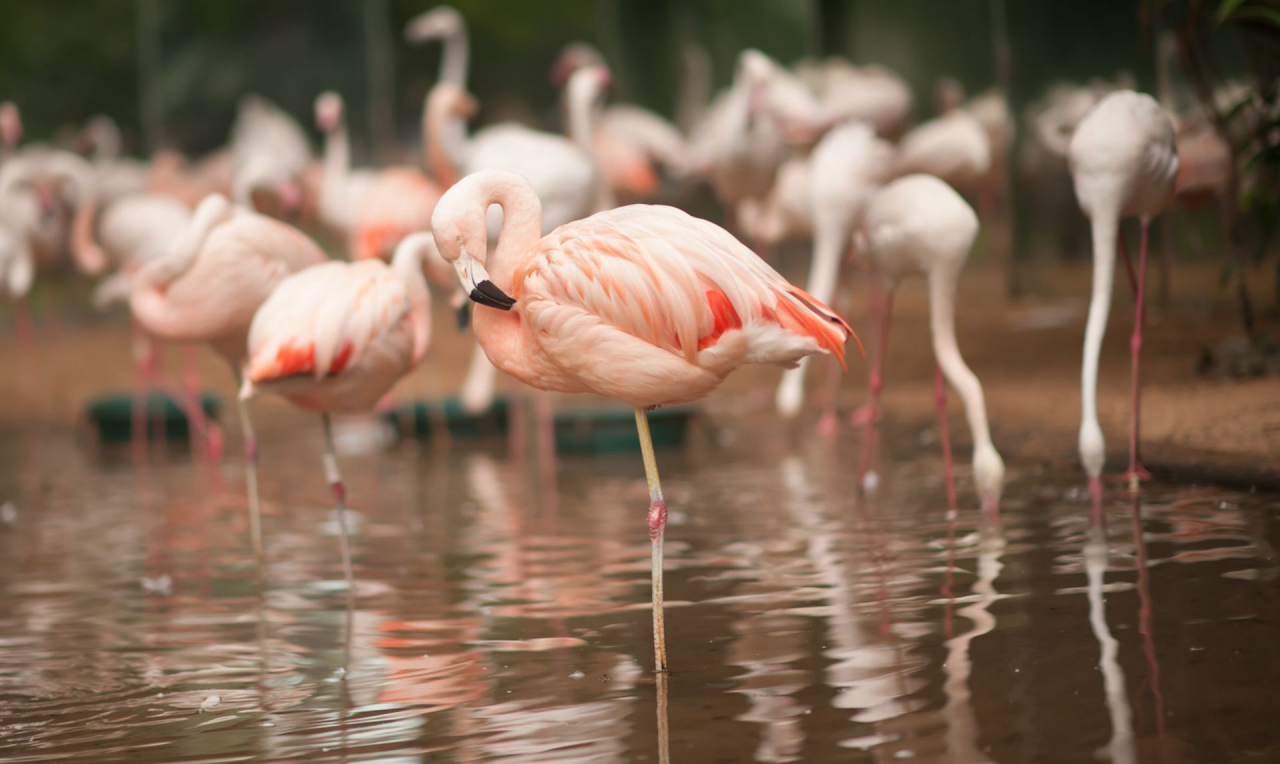 O local começou a reproduzir os flamingos em 2014. Atualmente já são 109 adultos e 12 filhotes, entre espécies africanas e chilenas. Só no ano passado nasceram 21 bichinhos.