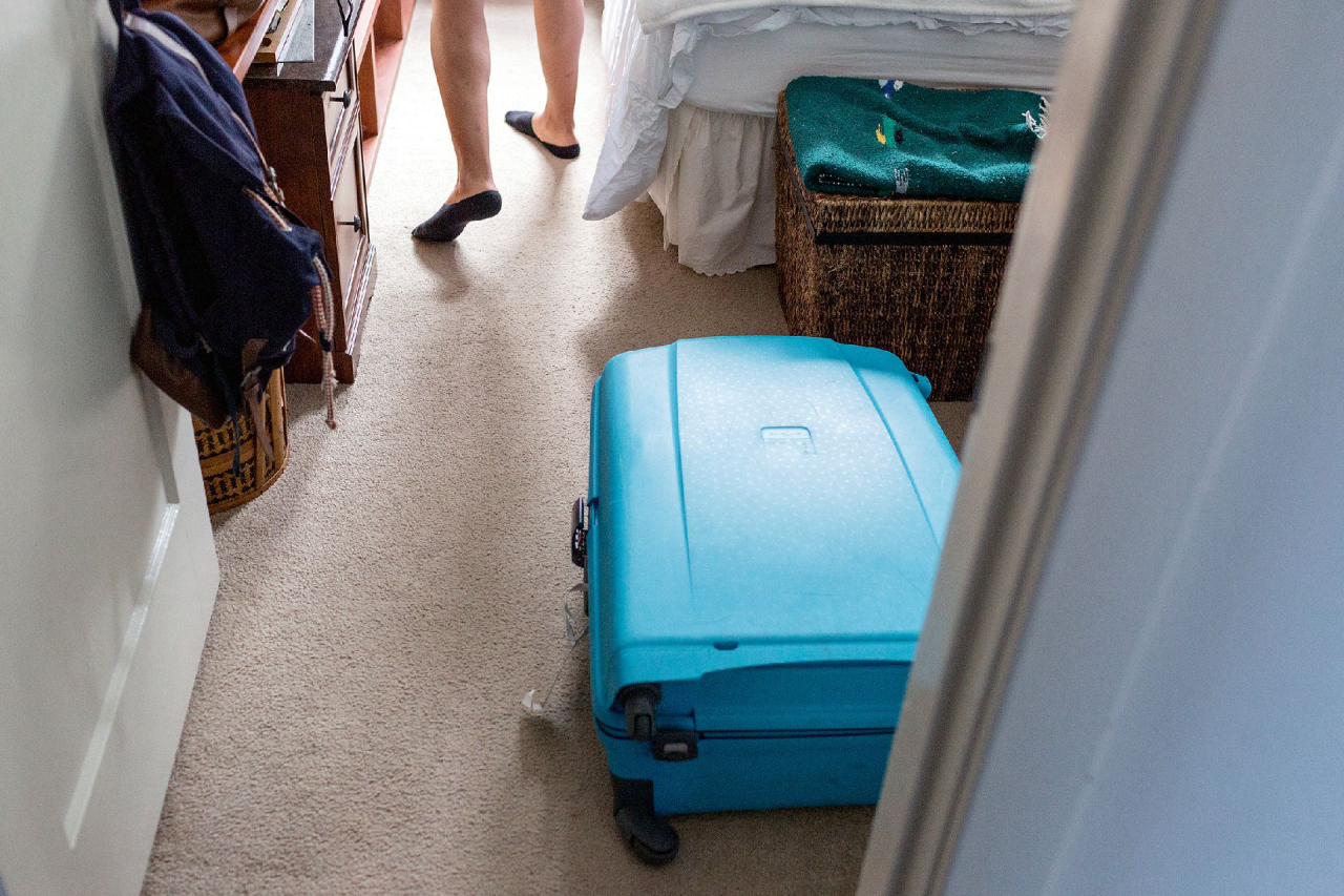 Valerie Valdez, center, walks past a guest’s luggage at her home, which is also an Airbnb, in San Francisco, June 16, 2016. Booking an Airbnb instead of a hotel can be enticing for a frugal traveler, but comes with risks. (Jason Henry/The New York Times)
