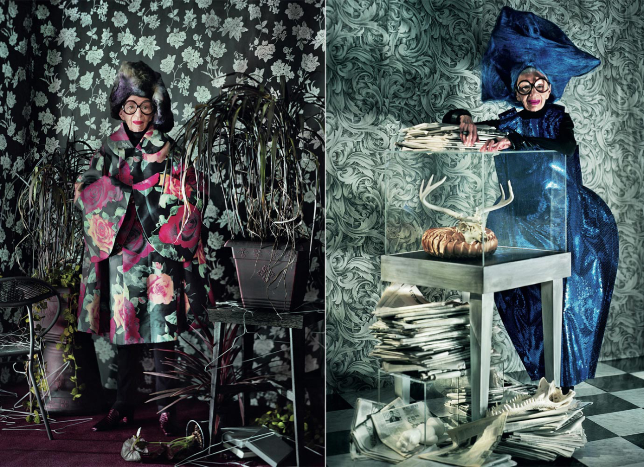 Todo mundo quer saber a visão que há por trás dos seus gigantescos óculos redondos. Aos 94 anos, a decoradora nova-iorquina Iris Apfel não foi e nem é estilista, modelo ou editora de moda, mas isso não impediu que ela se tornasse um ícone de estilo, daqueles que carregam informação fashion em cada look que vestem e têm bons quotes sobre a indústria.