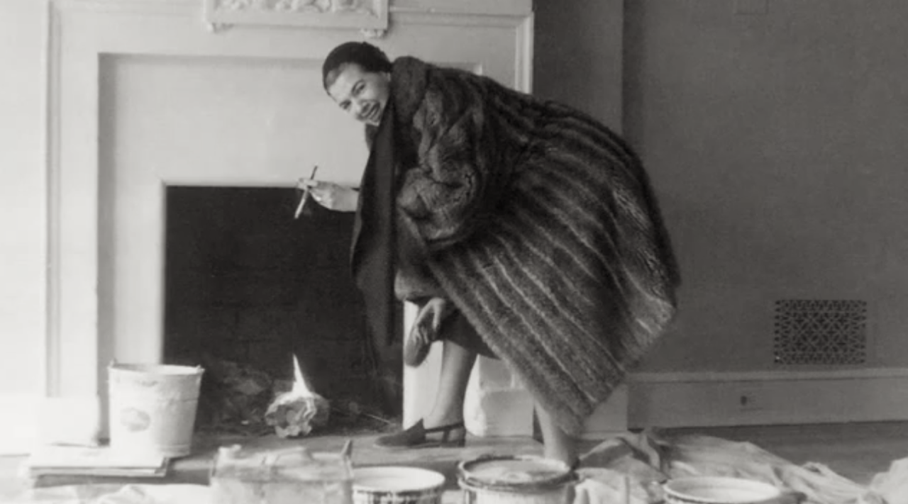 Trabalhando como decoradora, ainda jovem, clicada pelo marido Carl.