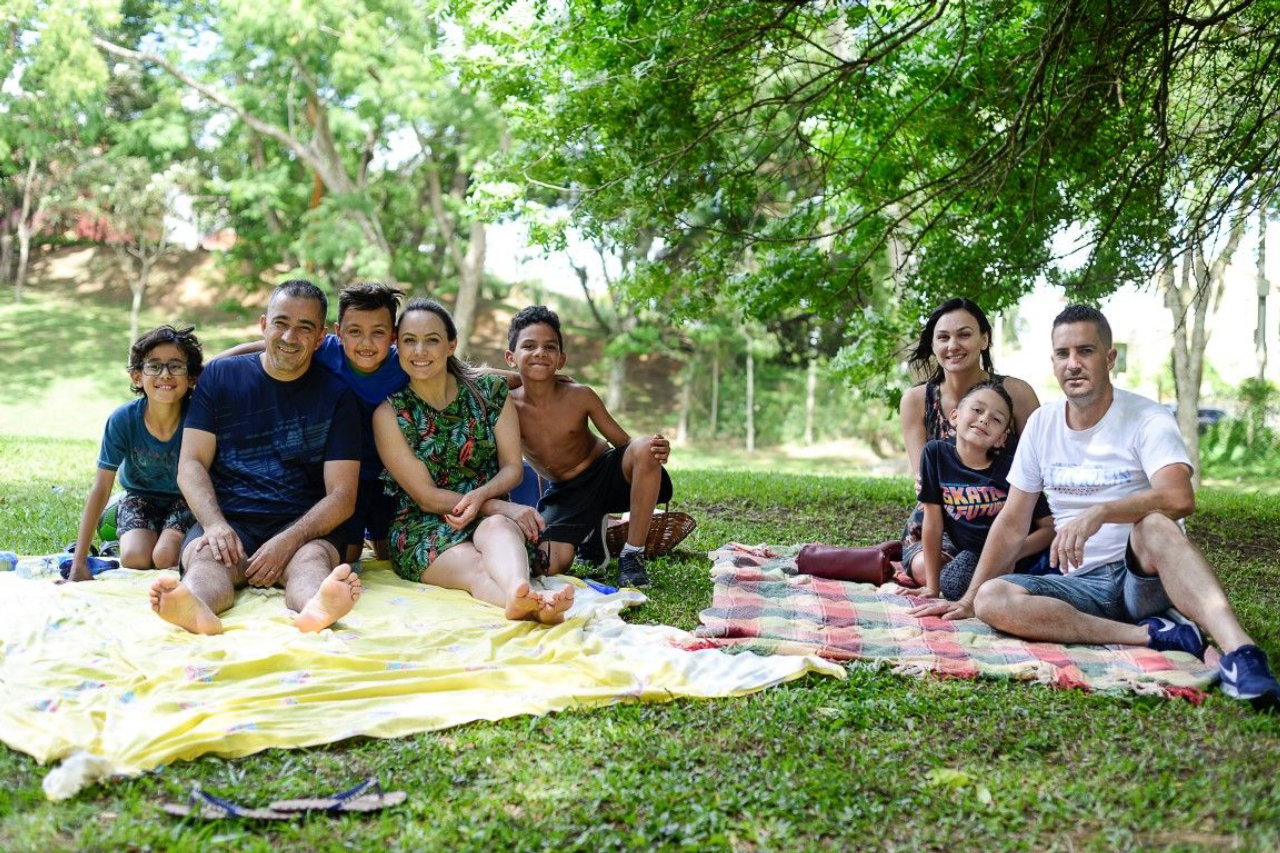 “O que era mais gostoso da nossa infância era estar perto da natureza, subir nas árvores, curtir um balanço, uma rede. E isso eles [os filhos] têm pouco! E temos que aproveitar esses espaços que temos, e trazer as crianças para que elas curtam também”, conta Luciana, secretária de 31 anos, ao lado do marido, Jovani, contador, de 48 anos.