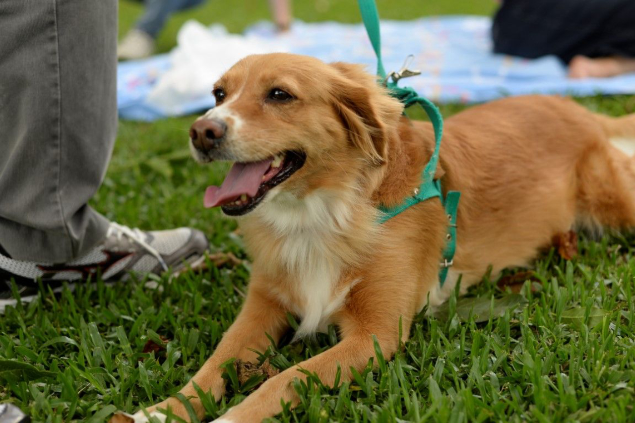 Fofa é quem mais adora passear pelo parque para espantar o calor (Foto: Nay Klim / Gazeta do Povo)