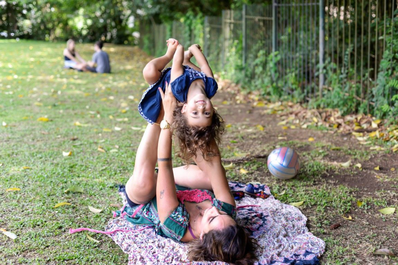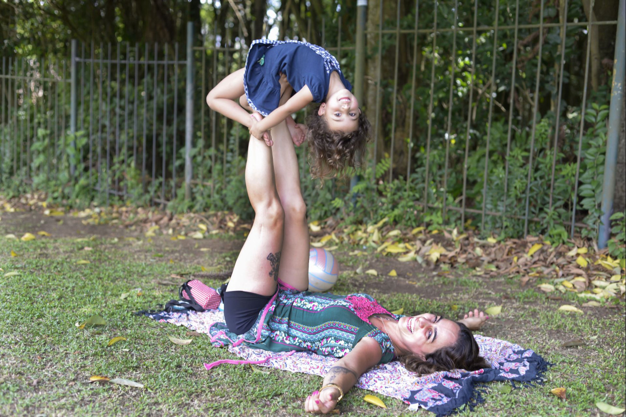 Karol mal se dá conta, mas a um metro e meio de distância a pequena Luana Luz, de três anos, corre com uma bola nas mãos. Ela chuta, pula, corre, rola na grama, e volta descabelada aos braços da mãe, Kali Ananda, professora de yoga de 34 anos. Embora morem em uma casa na cidade, o espaço não tem um quintal tão grande para Luana gastar as energias quanto os fundos do MON.