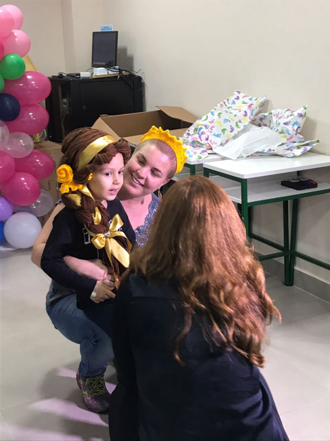 Para ela, participar da ação foi uma realização profissional e pessoal. “É muito gratificante tecer algo com as próprias mãos e dedicar tempo para depois ter uma recompensa tão linda”, diz. Ao ver os sorrisos das crianças com as perucas de lã, a designer se emocionou. “Por alguns minutos, elas puderam esquecer todas as dificuldades. Elas voltaram a ser crianças.”
