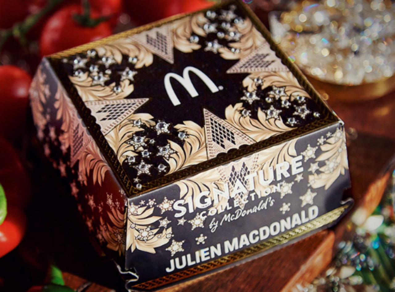O McDonald´s lançou, no Reino Unido, uma linha de embalagens assinadas pelo designer de moda Julien Macdonald. O fato do sobrenome do estilista ser igual ao da marca é mera coincidência, mas serviu justamente para a jogada de marketing. Em edição limitada, foram produzidas mil caixas decoradas para acompanhar o lançamento da linha de hambúrgueres gourmets da rede. A clássica caixa do sanduíche ganhou detalhes dourados, estilo barroco e cristais.